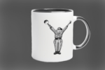 Individuell bedruckter Steinzeugbecher. Innenseite und Henkel sind auch in weiß anstatt schwarz möglich.
